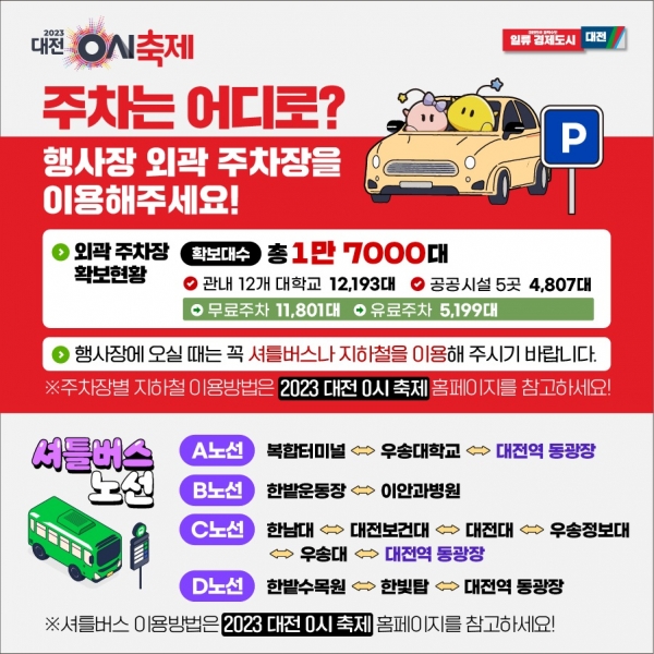 주차장별 이용방법은 대전 0시 축제 홈페이지를 참조하면 된다.