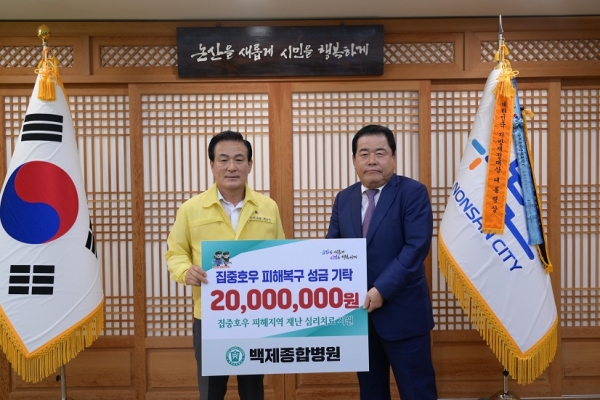 26일 오후에는 백제종합병원이 2천만원을, 논산속편한내과가 1천만원을 기부했다.