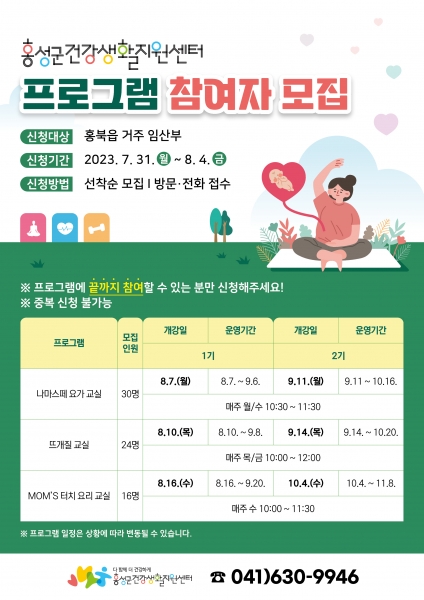프로그램 일정 및 참여자 모집 관련 자세한 사항은 건강생활특화팀으로 문의하면 된다.