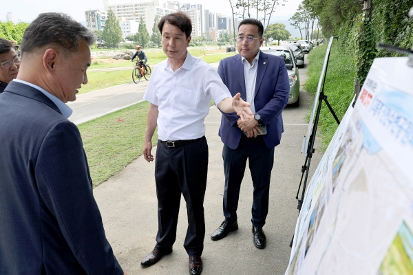 이어 대구시 신천 사계절 물놀이장 조성사업 현장을 방문해 대구시 관계자로부터 설계부터 활용계획까지 청취하며 효율적인 운영방안을 고찰했다.