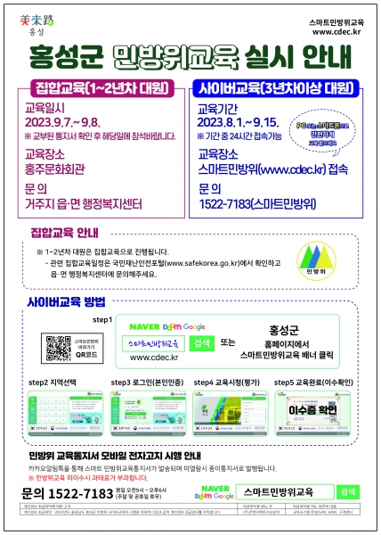 홍성군, 2023년 하반기 민방위 보충 1차 사이버 교육 실시
