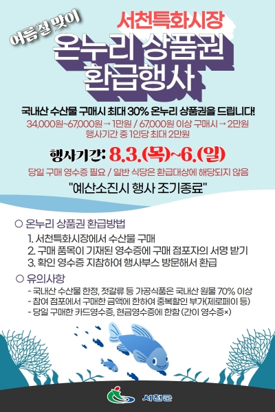 서천군, 서천특화시장에서 수산물 사고 온누리상품권 받아가세유~