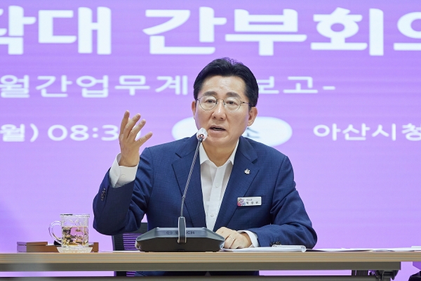 [Ytv영상스토리] 박경귀 아산시장이 31일 열린 ‘8월 월간 확대간부회의’에서 “매니페스토 경진대회에서 최우수상을 받은 데 이어 이제는 성과를 창출해 인정받아야 한다”고 강조했다.
