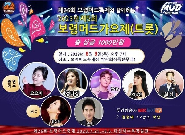 먼저 3일 오후 8시 대천해수욕장 머드박람회장 특설무대에서는 ‘제5회 보령머드가요제’가 개최된다.