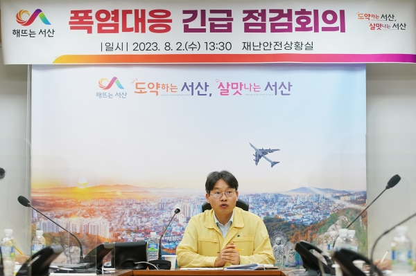 시는 이완섭 서산시장의 폭염 피해 예방 특별 지시에 따라 2일 시청 재난안전상황실에서 구상 부시장, 11개 관련 부서장 등이 참석한 가운데 긴급 폭염대책 점검회의를 열었다고 밝혔다.