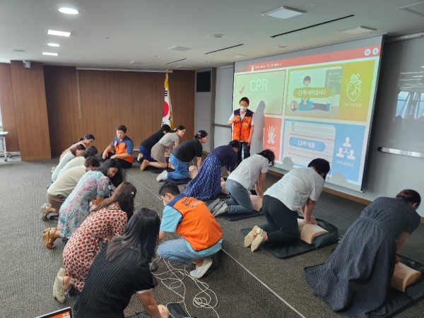 안전교육은 응급상황이 발생했을 때 신속하게 조치할 수 있도록 영아·소아·성인 대상 심폐소생술 자동심장충격기 사용법 기도폐쇄 시 대처방법 등으로 구성됐다.