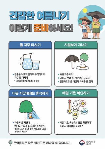 보건소 관계자는 “폭염에 의한 사고를 예방하고 건강하게 여름을 날 수 있도록 온열질환 예방 3대 수칙인 그늘, 물, 휴식을 생활화해야 한다”며 “고열이나 어지럼증, 근육경련 등 몸에 이상이 느껴지면 시원한 장소로 이동해 119 구급대에 도움을 요청해야 한다”고 강조했다.