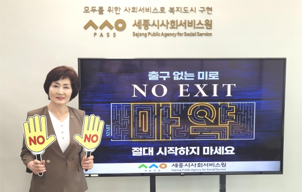 [Ytv영상스토리] 김명희 세종특별자치시 사회서비스원장은 최근 사회적인 문제로 떠오르는 마약을 근절하기 위해 ‘NO EXIT’ 캠페인에 동참했다고 밝혔다.