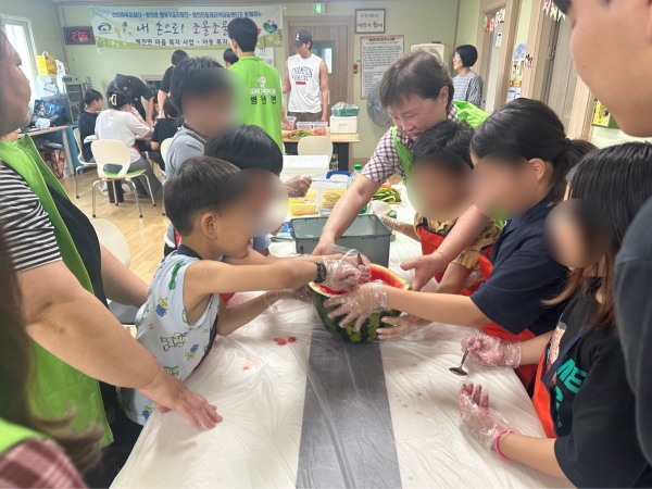 이번 요리교실을 통해 민들레지역아동센터 이용 아동들은 김밥과 수박화채를 만들고 친구와 나눠 먹으며 서로를 칭찬하는 등 즐거운 시간을 보냈다.