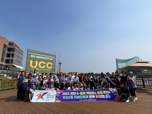 [Ytv영상스토리] 천안시 부성2동이 지난 2일 성성호수공원 일대에서 통장협의회, 주민자치회, 새마을회 등 8개 자생단체와 함께 천안 K-컬처박람회의 성공개최를 기원하는 홍보 캠페인을 실시했다.