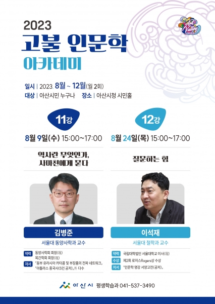 [Ytv영상스토리] 아산시가 오는 9일 시청 시민홀에서 서울대 동양사학과 김병준 교수의 ‘역사란 무엇인가, 사마천에게 묻다’를 주제로 고불 인문학 아카데미 열한 번째 이야기를 이어간다.