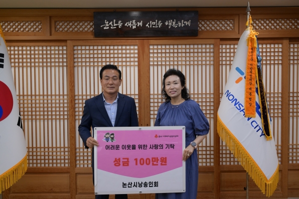 이번 성금은 논산시낭송인회 회원들이 십시일반 마련한 것으로 김봉숙 회장은 “이어지는 무더위 속 힘든 여름을 보내고 있을 저소득층 가구를 위해 회원들의 마음을 모았다”고 기탁 취지를 밝혔다.