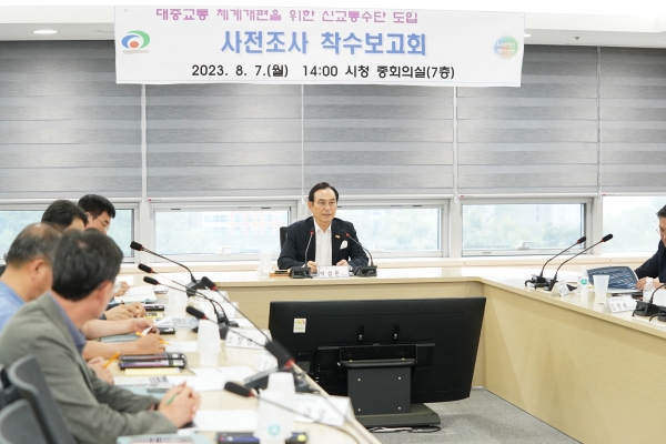 시는 지난 7일 시청 중회의실에서 박상돈 천안시장 등 관계자와 외부 전문가들이 참석한 가운데 ‘대중교통 체계 개편을 위한 신교통수단 도입 사전조사 착수보고회’를 개최했다.