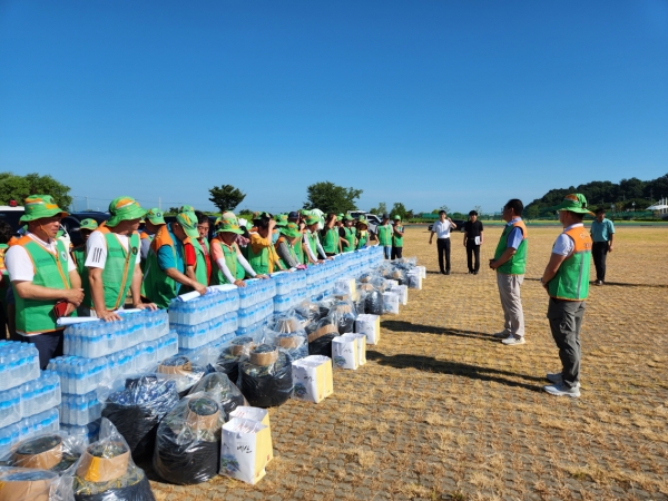 자율방재단 예찰활동은 지난해부터 읍면별로 확대 추진돼 올해 2회차를 맞이했으며 얼음물 3000개와 폭염예방물품 2850개를 전달하고 온열질환자가 많이 발생하는 영농작업장을 중심으로 ‘무더운시간 작업 안돼요 나홀로 작업 안돼요’ 캠페인을 진행했다.
