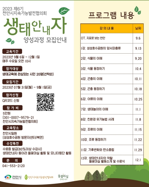 생태안내자 양성과정 모집 리플릿(사진=천안시)