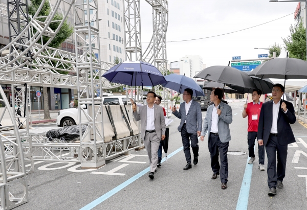 현장에서 이상래 의장은 “북상하는 태풍 카눈은 호우와 강풍을 동반하고 있어 축제 관련 가설물의 안전사고 위험성이 있다”고 말하고 “시민들과 관람객의 안전을 최우선으로 고려해 사고가 발생하지 않도록 만반의 준비를 다해 주기 바란다”고 당부했다.