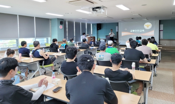 시는 서산경찰서 김흥구 팀장을 초빙해 지난 9일 서산문화복지센터에서 교통안전교육을 진행했다(사진=서산시)