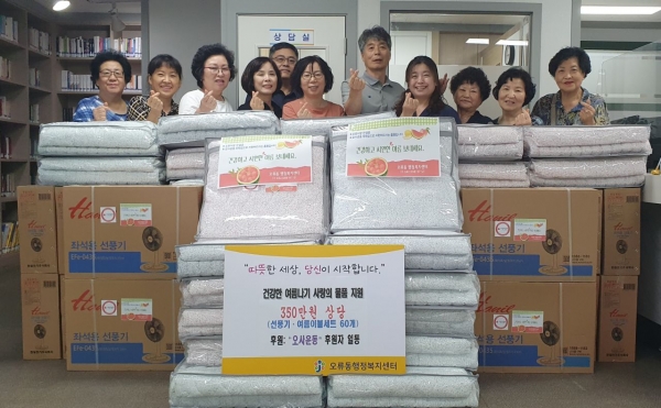 김길수 자생단체협의회장은 “오사운동으로 생활이 어려운 분들이 조금이나마 시원하게 여름을 지내시도록 여름용품을 지원하게 됐고 후원에 많은 참여를 바라며 앞으로도 최선을 다하겠다”고 전했다.