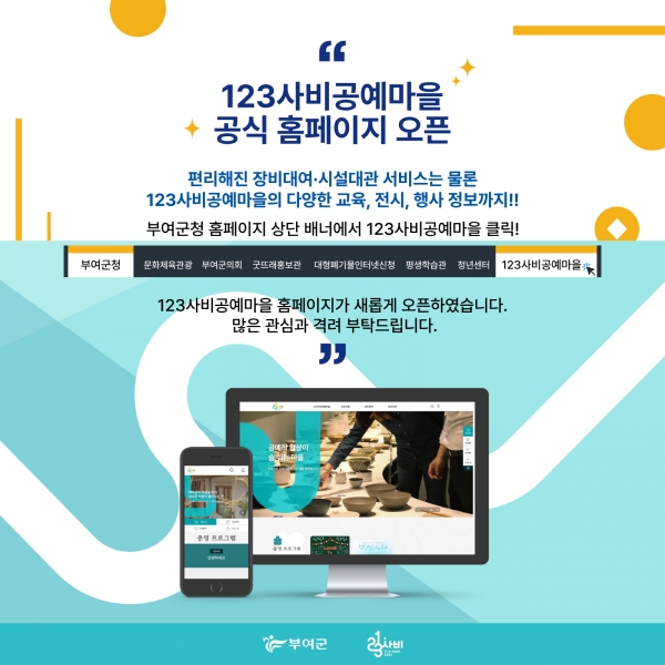 123사비공예마을 공식홈페이지 오픈 공지 사진(사진=부여군)