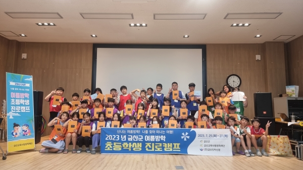 지난 7월 25일부터 27일까지 3일간 제원면 신안희망센터에서 초교 5∼6학년 학생 44명을 대상으로 진행된 금산군 초등학생 진로 캠프는 ‘진로 탐색과 진로 비전의 설계, 자기주도학습 능력 향상’을 주제로 프로그램을 진행해 호응을 얻었다.