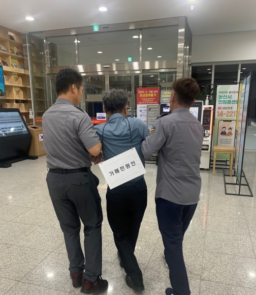 민원 담당직원, 청원경찰, 논산경찰서 관계자 등 훈련 참여자들은 매뉴얼에 따라 민원인 중재 ‘웨어러블 캠’ 통한 현장 녹음 및 촬영 비상 벨 호출 피해 직원과 방문 민원인 대피 가해 민원인 제압 경찰 인계 등의 순서로 훈련에 임했다.