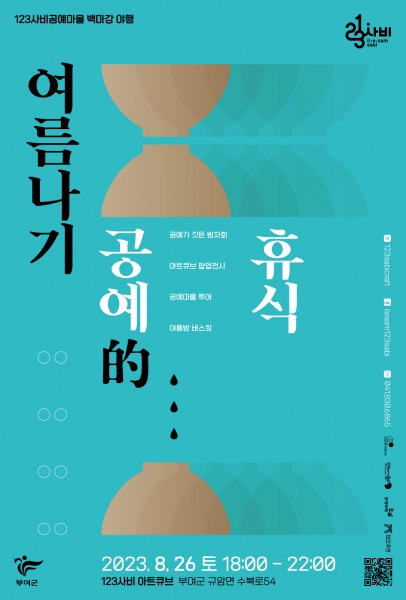 행사는 여름밤 백마강에서 차와 이야기를 나누며 일상 속 공예의 가치를 경험해보는 ‘공예가 깃든 밤차회’ 123사비창작센터 청년공예가들의 팝업전시 ‘차 한잔 공예 한입’ 마을의 숨겨진 공간력을 발견하고 공방에서 공예를 배워보는 ‘규암산책 : 공예마을 투어’ 시원한 강바람을 맞으며 즐기는 ‘여름밤 버스킹’ 등이 펼쳐진다.