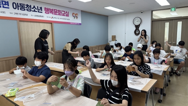 행복문화교실은 교육이나 문화적으로 소외되기 쉬운 농촌지역 아동 100여명을 대상으로 가죽공예 도예교실 목공교실 푸드테라피 등 6가지 다채로운 프로그램으로 마련됐다.