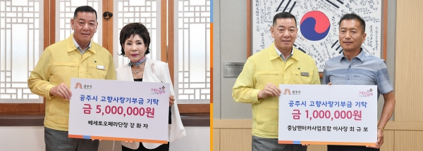 [Ytv영상스토리] 공주시는 지난 14일 출향인인 강화자 베세토오페라단장과 충남렌터카사업조합 최규보 이사장이 고향사랑기부금을 전달했다고 밝혔다.