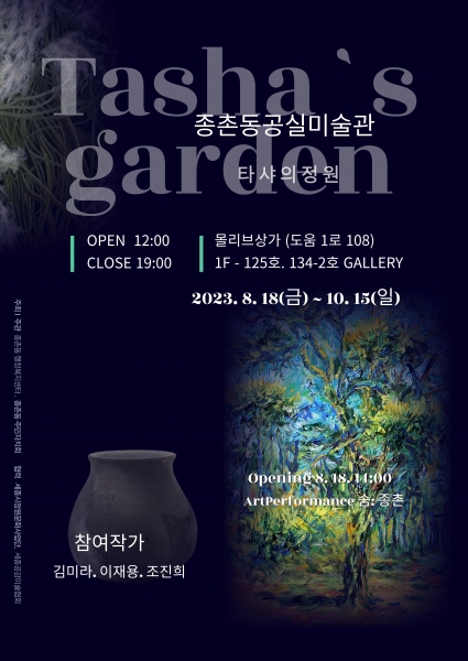 ‘타샤의 정원’은 일년내내 꽃이 지지 않는 ‘비밀의 화원’으로 미국의 가장 아름다운 정원으로 잘 알려져 있으며 지역작가인 김미라, 이재용, 조진희 등이 참여한다.