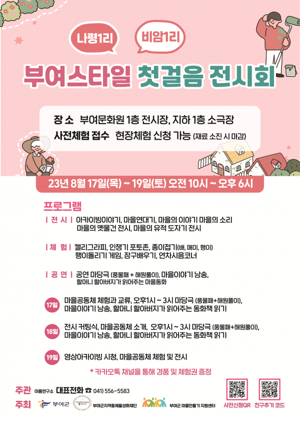 ‘부여스타일 첫걸음 전시회’ 이름으로 진행되는 이번 행사는 지난 17일부터 시작해 오는 19일까지 3일간 ‘부여문화원’ 소전시실과 소강당에서 열린다.