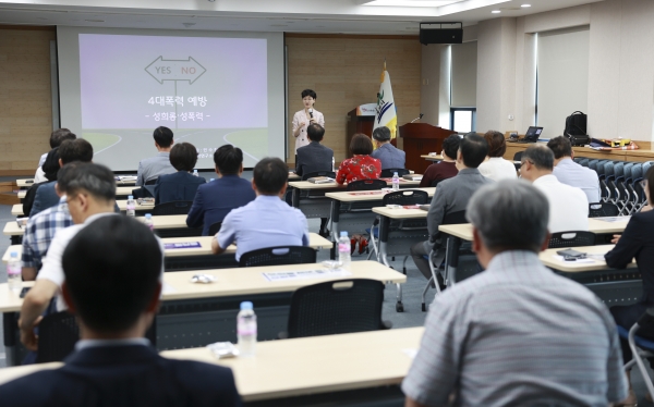 17일 시청 대회의실에서 이응우 시장을 비롯한 관리직 공무원을 대상으로 직장 내 4대 폭력 예방 교육을 실시했다(사진=계룡시)