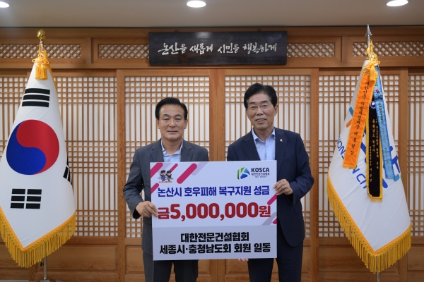 대한전문건설인협회 박종회 지회장은 “건설인협회 구성원이 모은 성원이 수재민들의 일상복구에 조금이나마 이바지할 수 있기를 희망한다”며 의연금 5백만원을 전달했다.