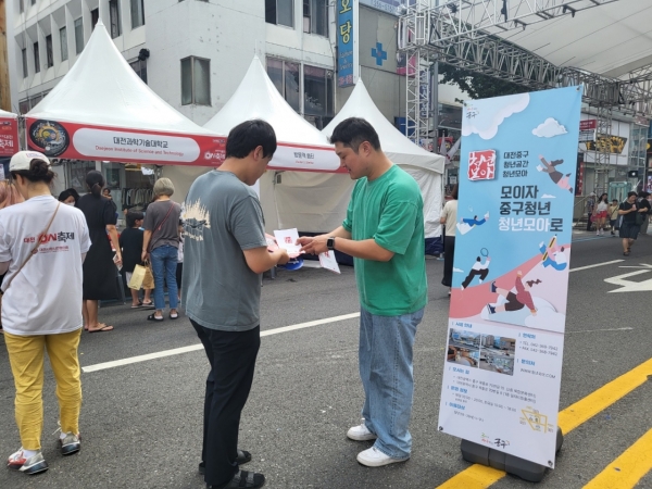 대전 중구는 0시 축제 기간동안 중앙로 일원에 중구 청년공간‘청년모아’홍보 부스를 마련하고 축제장을 찾은 청년과 청소년들을 대상으로 홍보 활동을 펼쳤다(사진=중구)