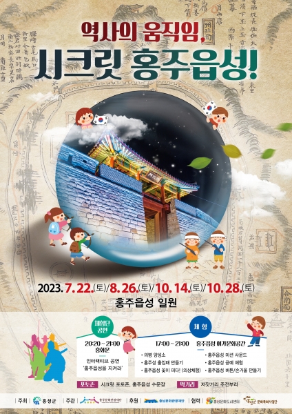 한편 충남 역사·문화·생태 융합형 관광콘텐츠 개발 공모사업으로 추진하는 '역사의 움직임, 시크릿 홍주읍성' 은 문화공연 콘텐츠와 다양한 체험을 접목해 홍주읍성을 문화관광 공간으로 조성해 원도심 공동화 현상을 해소하고 주변 상가를 활성화하기 위해 기획됐다.