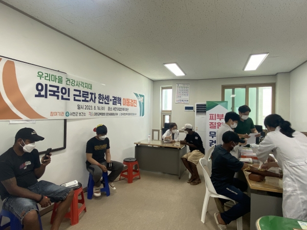 지난 16일 서면 어업인복지회관에서 외국인 근로자와 65세 이상 주민을 대상으로 피부질환 및 결핵 무료검진을 실시했다(사진=서천군)