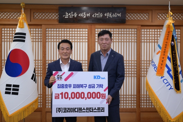 백 시장은 “수해 극복에 온 지역사회가 단결하는 가운데, KDind 측이 나누신 성의가 시민들에게 큰 힘이 될 것”이라며 “앞으로도 논산시 지역사회와 KDind가 상생하는 관계로 발전할 수 있기를 희망한다”고 화답했다.