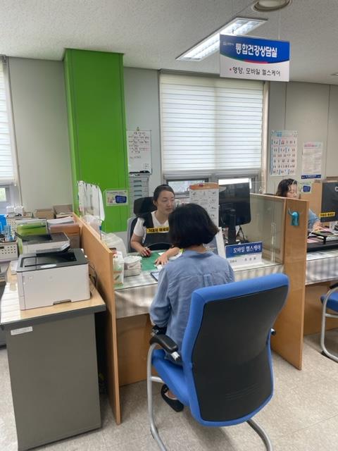 천안시 서북구보건소 관계자가 모바일 헬스케어 사업 참여 대상자 중간점검을 하고 있다. (사진=천안시)