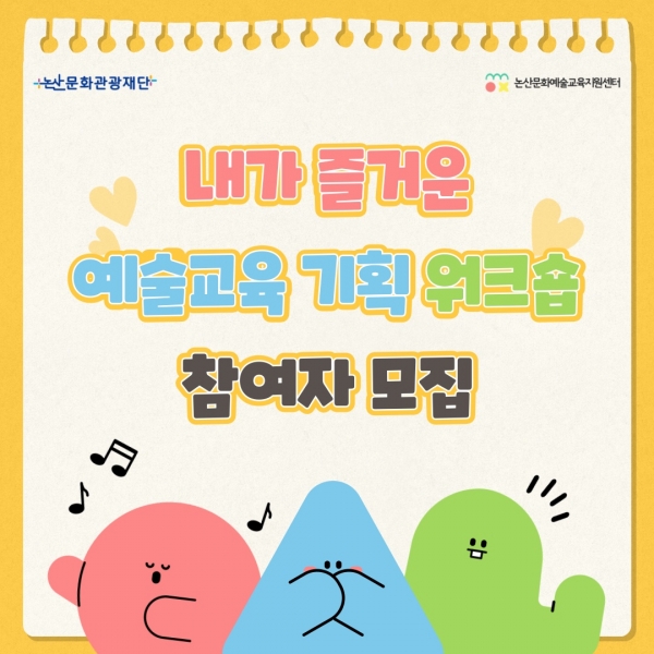 [Ytv영상스토리] 논산문화관광재단이 문화예술교육의 새로운 장이 될 전문인력 양성 프로그램 ‘내가 즐거운 예술교육 기획 워크숍’ 의 참여 시민을 모집한다.
