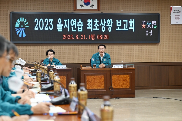 [Ytv영상스토리] 홍성군은 21일 군청 회의실에서 이용록 군수 주재로 간부공무원 20여명이 참석한 가운데 ‘2023년 을지연습 최초상황보고회’를 개최했다.