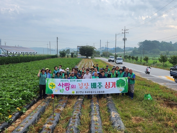 봉산면 남녀새마을지도자협의회 사랑의 김장 배추심기 행사 모습(사진=예산군)
