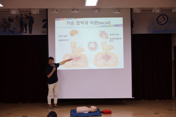 [Ytv영상스토리] 충청남도아산교육지원청은 8월 22일 오후 4시 3층 대강당에서 전직원을 대상으로 응급처치 및 심폐소생술 교육을 실시했다.