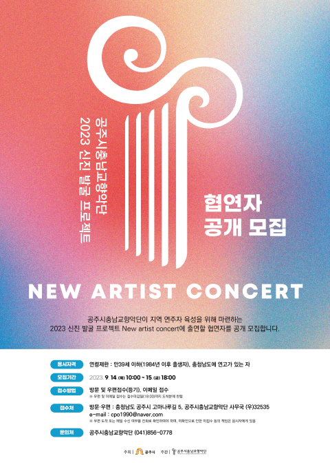 [Ytv영상스토리] 충청남도 공립예술단인 공주시충남교향악단이 충남지역 출신의 지역 연주자를 발굴하기 위해 마련하는 신진 발굴 프로젝트 새 예술가 콘서트에 출연할 협연자를 공개 모집한다고 21일 밝혔다.