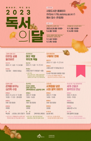 세종시립도서관 관계자는 “이번 독서의 달 문화행사를 통해 많은 시민이 독서의 계절인 가을에 책과 한 층 더 가까워지는 계기가 되길 바란다”고 말했다.
