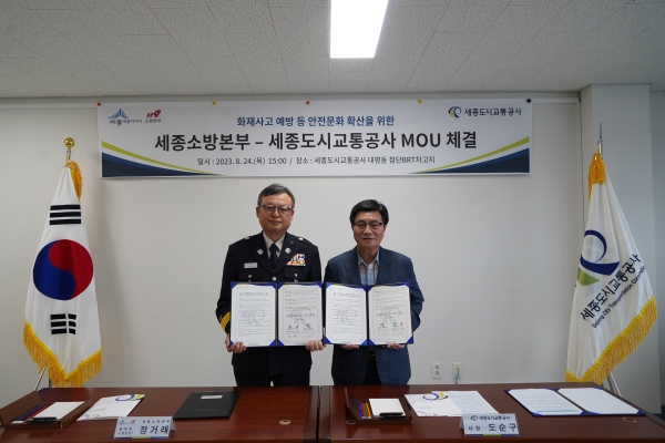 협약식 왼쪽부터_장거래_세종소방본부장 도순구 세종도시교통공사사장(소방본부)(사진=세종시)