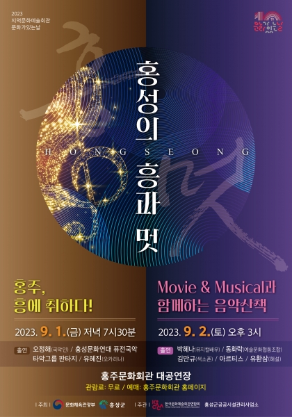 한편 ‘지역문예회관 문화가 있는 날’ 공모사업에 선정되어 국비 4천만원을 지원받아 지역 내에서 활발한 활동하는 예술단체들과 협업해 ‘홍성의 흥과 멋’을 주제로 전통국악과 퓨전국악의 흥, 그리고 뮤지컬과 영화음악의 멋을 다양한 프로그램으로 선보일 예정이다.