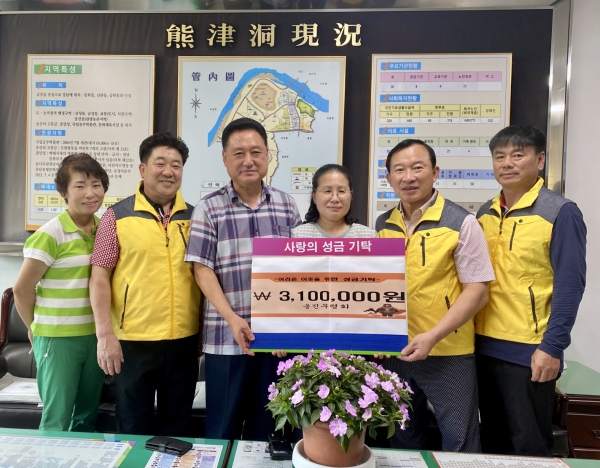 지난 25일 웅진동 행정복지센터에서 관내 저소득층을 위해 사용해 달라며 성금 310만원을 웅진동 지역사회보장협의체(위원장 현석열)에 전달했다(사진=공주시)