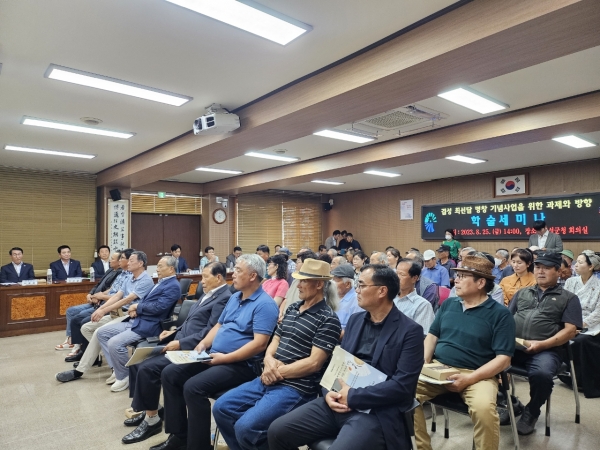 지난 25일 군청 회의실에서 홍성군민 80여명이 참석한 가운데 결성 최선달 명창 기념사업을 위한 과제와 방향을 주제로 학술세미나를 개최했다(사진=홍성군)