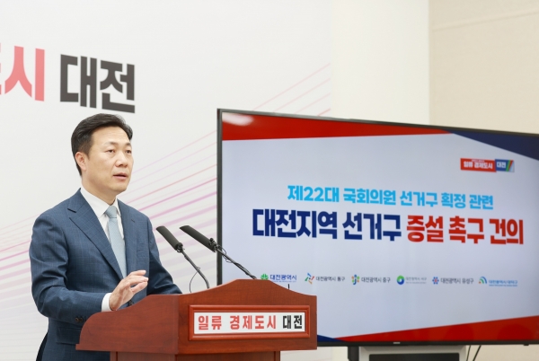 이택구 대전시 행정부시장은 28일 ‘국회의원 지역선거구 증설 촉구 건의’ 브리핑에서 “그동안 타 광역시에 비해 불이익을 받아온 대전 국회의원 지역선거구 증설을 정치권에 강력히 촉구하고 건의한다”고 밝혔다.
