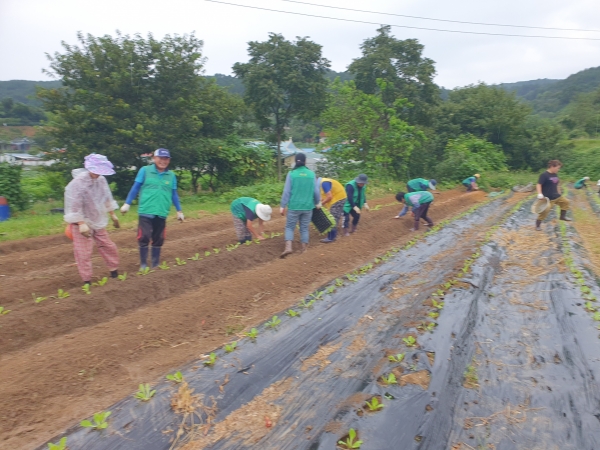 이날 행사는 새마을 남·여 회원 및 장곡면 직원 30여명이 참여해 배추 1,200포기와 무, 쪽파를 심으며 구슬땀을 흘렸다.