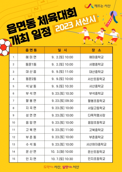 2023년 읍면동 체육대회 개최 일정(사진=서산시)
